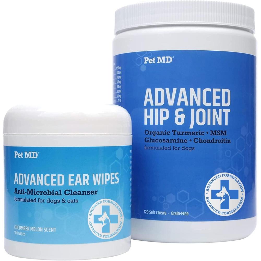 Delicious & Nutritious Dog Joint Care: Pet MD Advanced Hip & Joint bacon-flavored mobility bites contain powerful active ingredients, such as organic turmeric, MSM, Yucca, & Vitamins C & E in a tasty snack pups love.