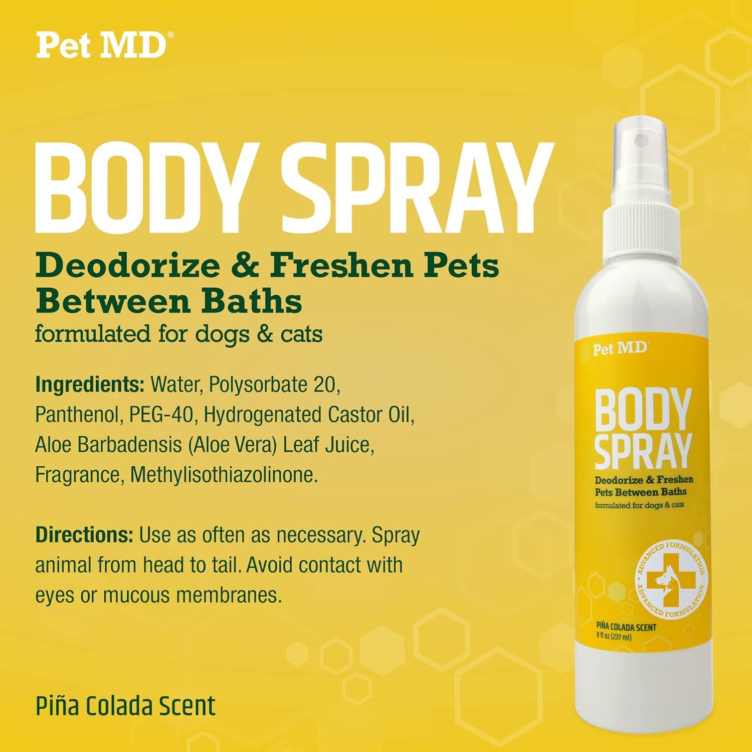 Pet MD Body Spray for Dogs & Cats, Deodorizing Dog Perfume Eliminates Odor, Long-Lasting Pet Cologne Spray for Dogs, Sweet Pea & Vanilla Scent(Pina Colada)