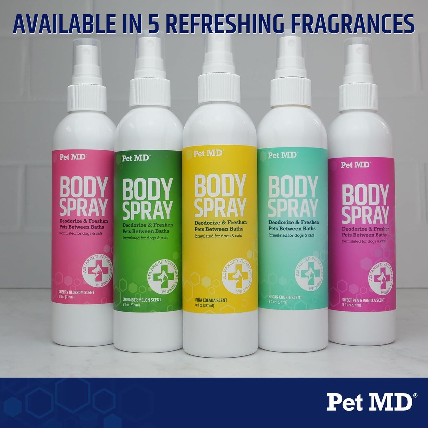 Pet MD Body Spray for Dogs & Cats, Deodorizing Dog Perfume Eliminates Odor, Long-Lasting Pet Cologne Spray for Dogs, Sweet Pea & Vanilla Scent(Sugar Cookie)