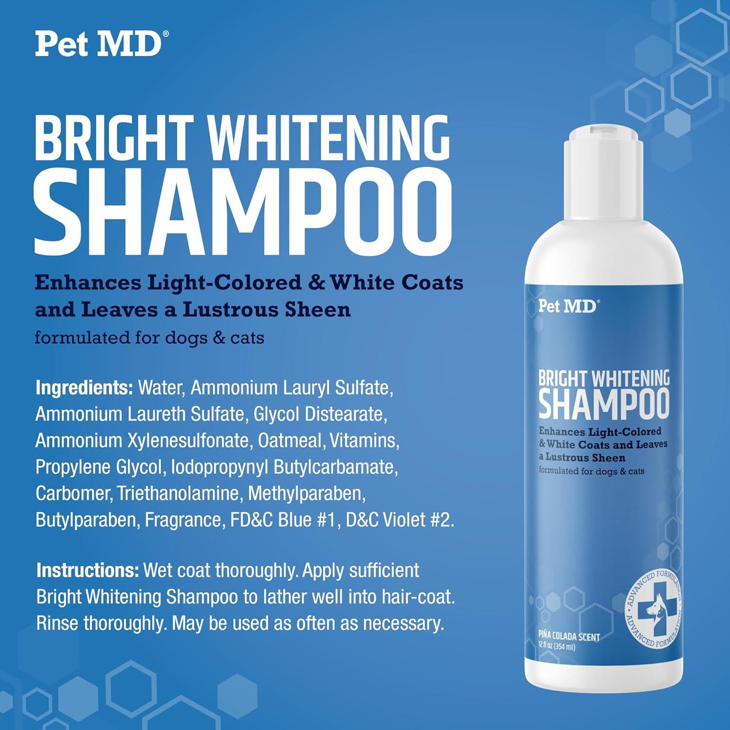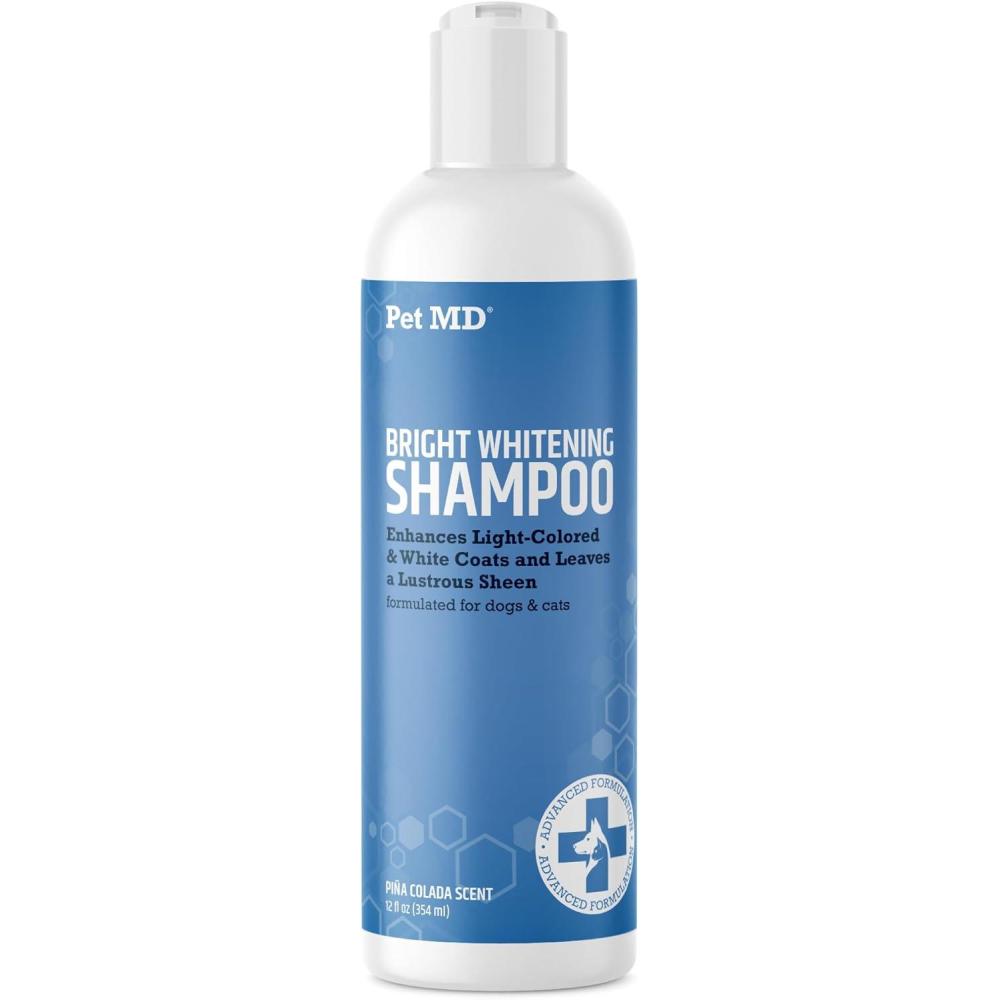 Pet MD Bright Whitening Shampoo for Dogs & Cats - Tearless Protein Enriched Shampoo w/Oatmeal for Brightening White & Light Colored Coats - Cleans, Adds Luster, & Controls Matting & Tangling - 12 oz
