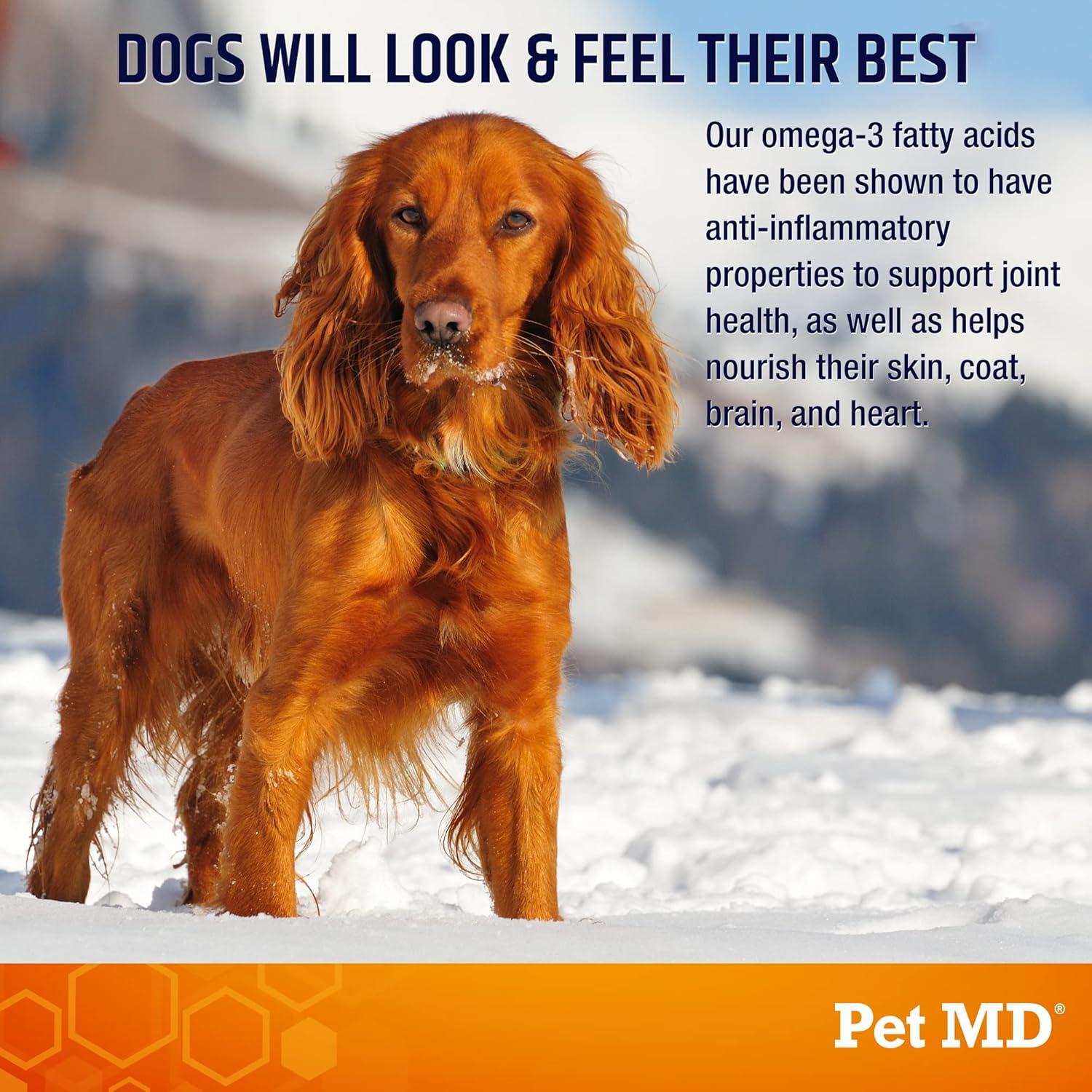 Made in the USA: Pet MD products like our dog fish oil supplements are created with veterinarian recommended ingredients of the highest quality and potency and are produced in the United States.
