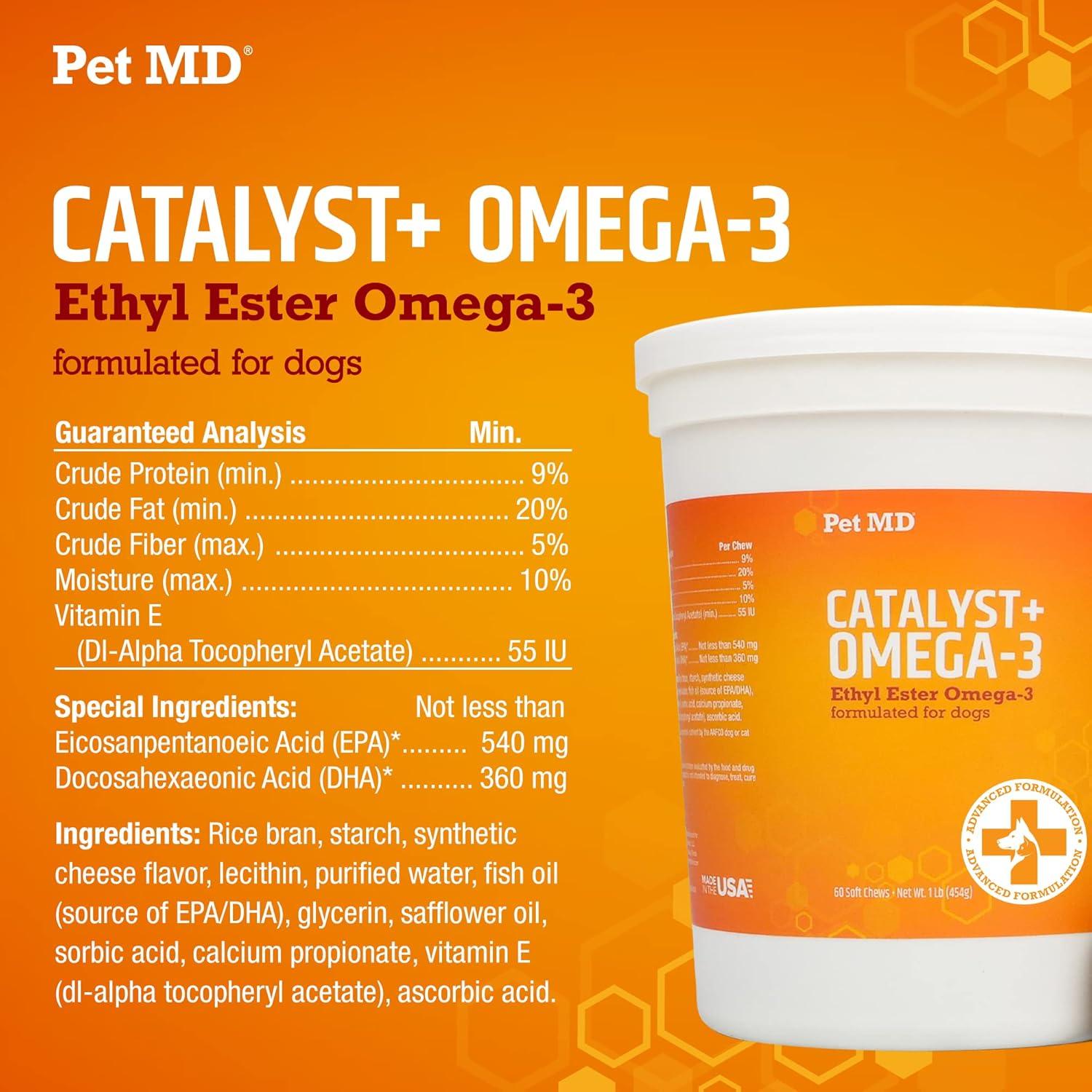 Pet MD Catalyst Omega 3 Chews for Dogs - Ethyl Ester Omega 3 Fish Oil for Dogs - Dog Skin and Coat Supplement - Reduces Inflammation for Dog Itchy Skin and Dog Scratching Relief - 60 Ct. - Pet MD