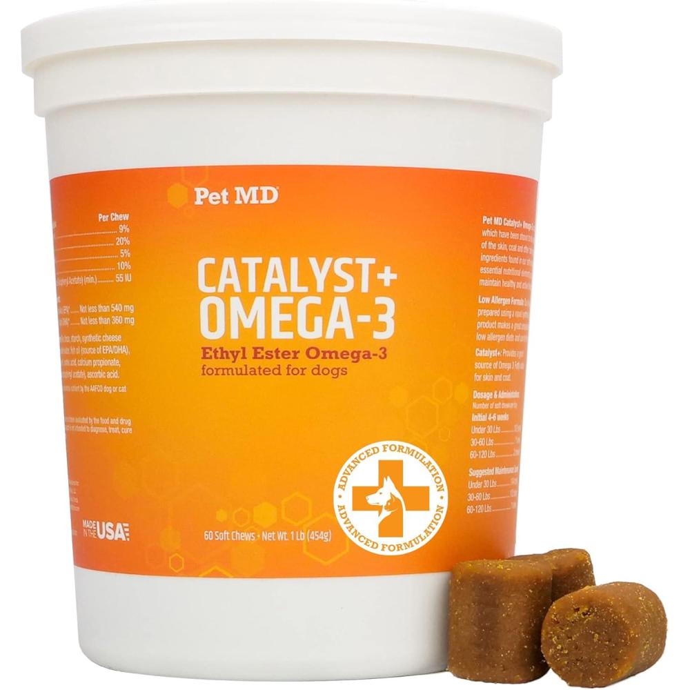 imagePet MD Catalyst Omega 3 Chews for Dogs  Ethyl Ester Omega 3 Fish Oil for Dogs  Dog Skin and Coat Supplement  Reduces Inflammation for Dog Itchy Skin and Dog Scratching Relief  60 Ct  Pet MD