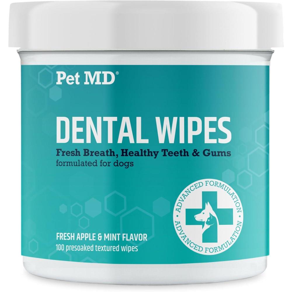 Healthier Teeth, Gums, & Fresher Breath: Pet MD Dental Wipes remove debris, plaque, & tartar all while leaving your dog's breath fresh & clean.
