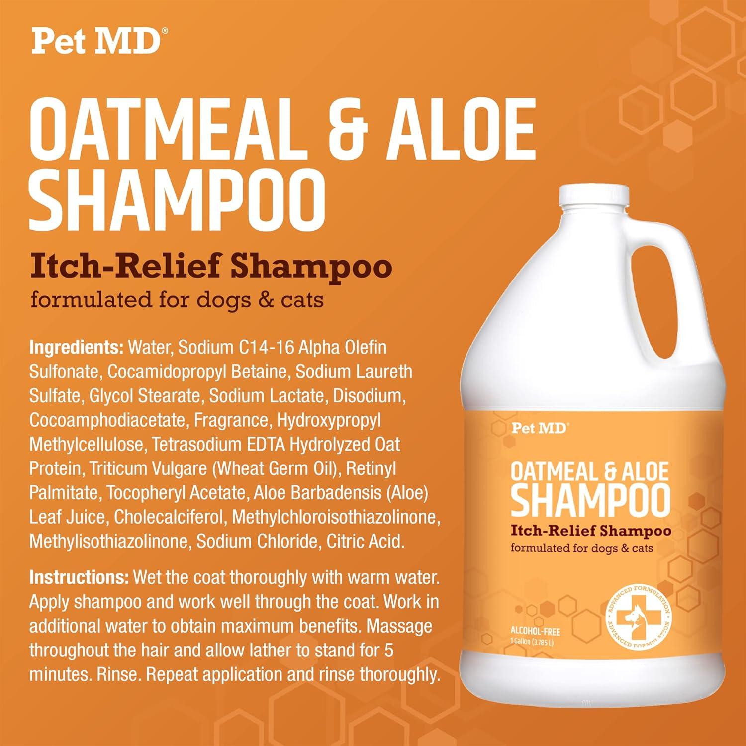 Pet MD Oatmeal & Aloe Shampoo for Dogs and Cats - Nourishing Anti Itch for Sensitive Dry Skin & Flaking - Professional Grooming & Moisturizing Dog Shampoo Gallon