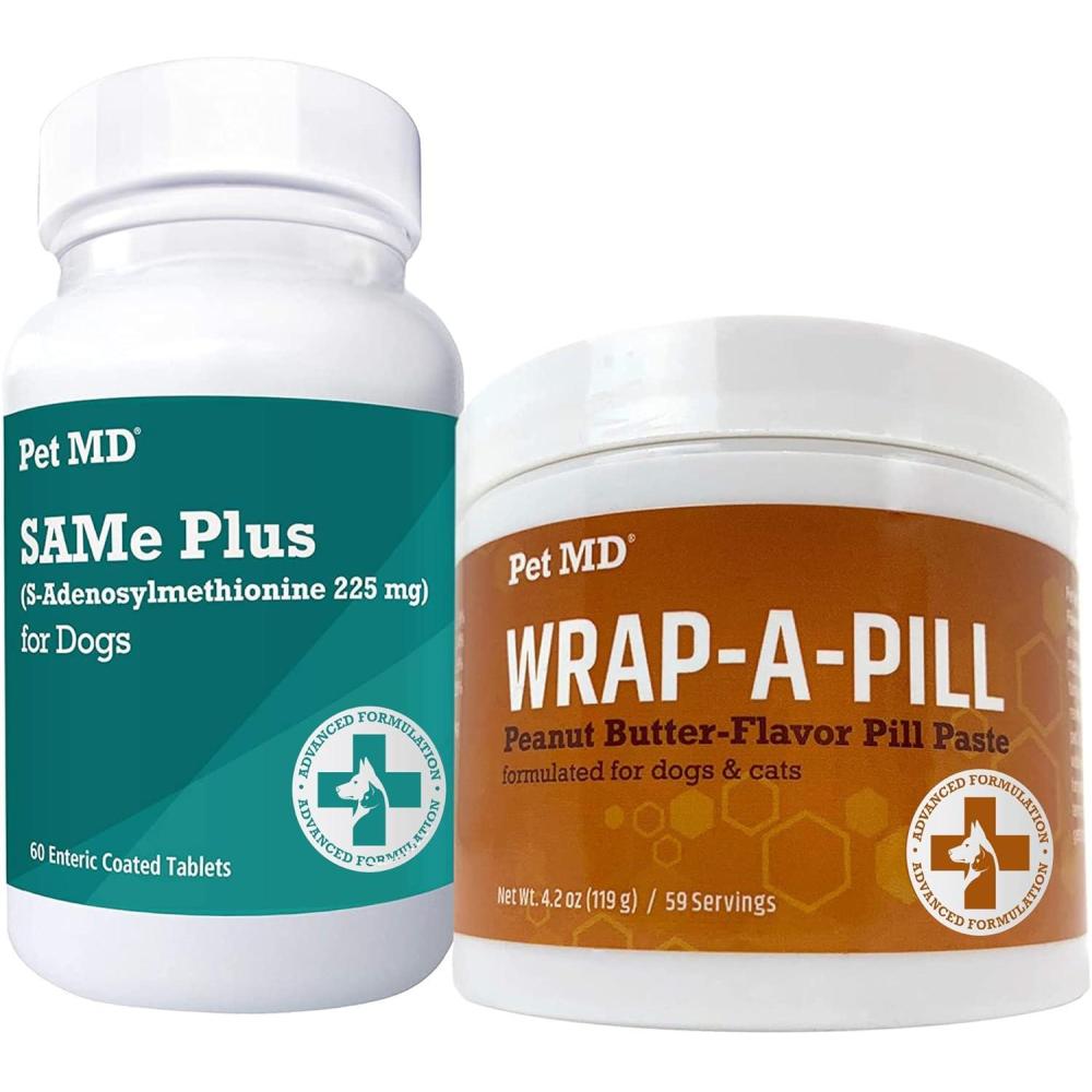 Pet MD Same Plus 225 mg S-Adenosyl Liver Supplement for Dogs + Wrap-A-Pill Peanut Butter Pill Paste 4.2 oz