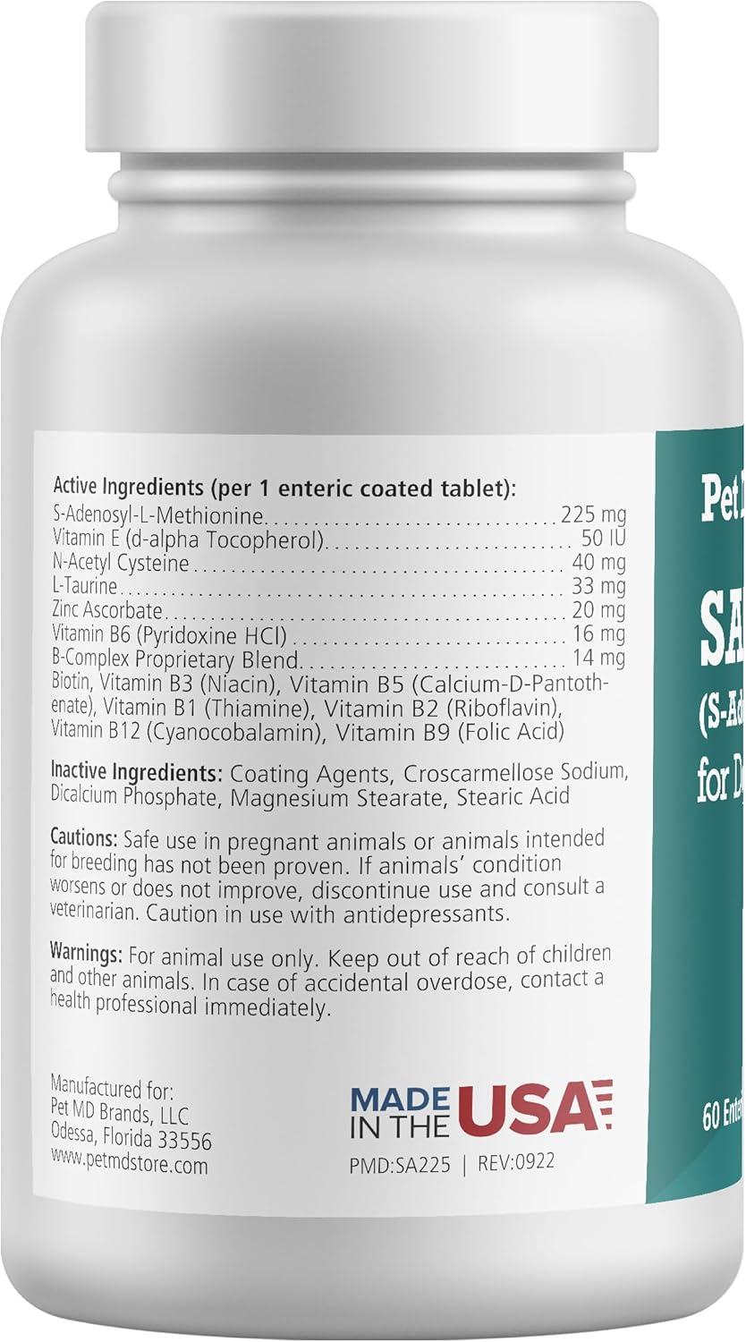 Pet MD Same Plus S-Adenosyl for Dogs 225 MG Hepatic Liver Supplement and Cognitive Support - 60 Count(225 MG 60 Count)