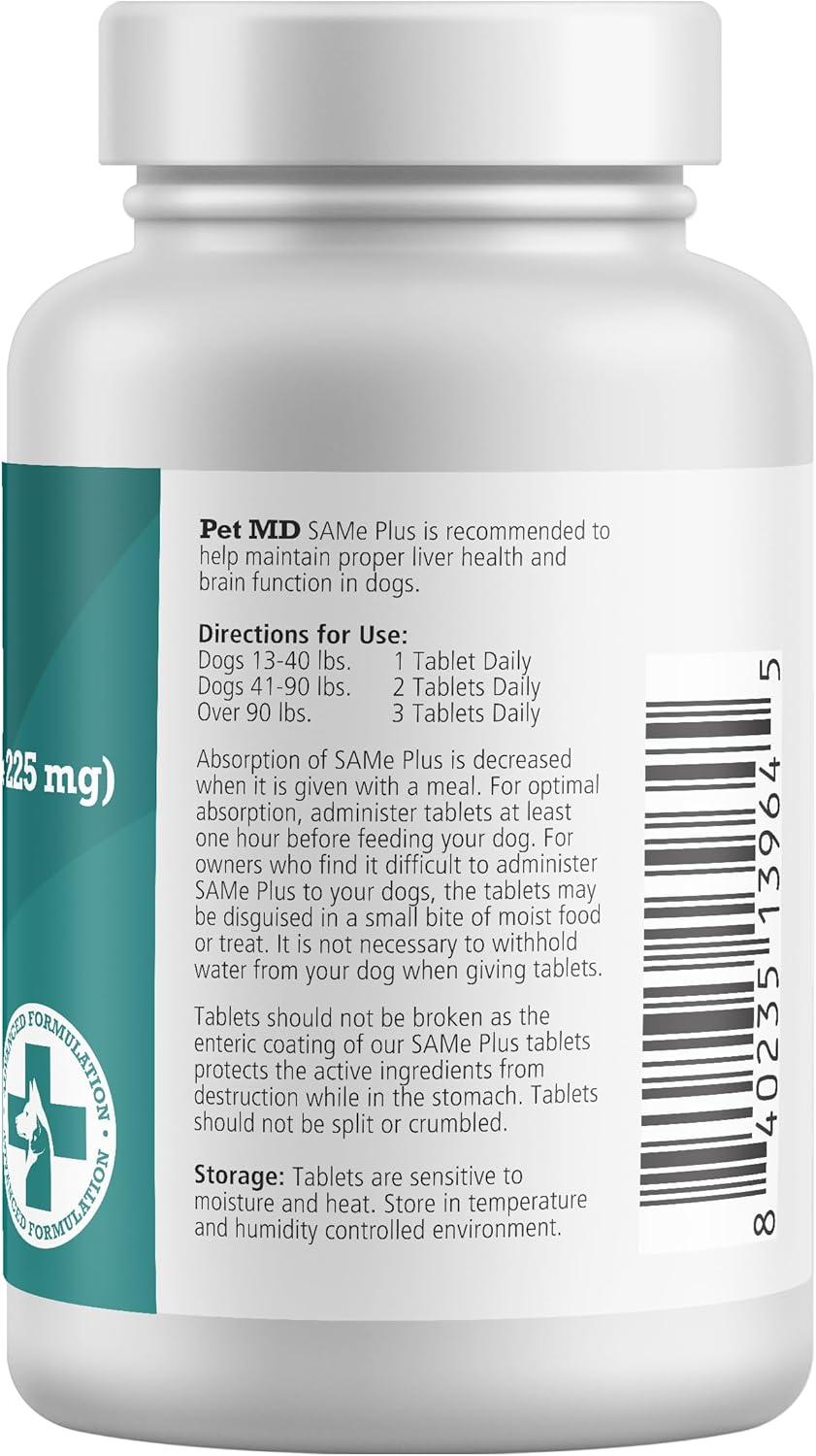 Pet MD Same Plus S-Adenosyl for Dogs 225 MG Hepatic Liver Supplement and Cognitive Support – 60 Count(225 MG 60 Count)